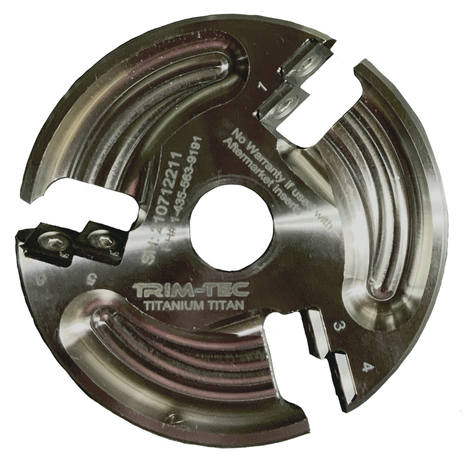 This titanium trimming wheel blade resists wear caused by abrasive materials such as rocks and sand, ensuring consistent cutting power over time. Equipped with 4-sided, indexable carbide inserts, available in 3mm Ultra and 3mm XD Performance options, the blade maintains sharpness and can be refreshed quickly to extend service life.