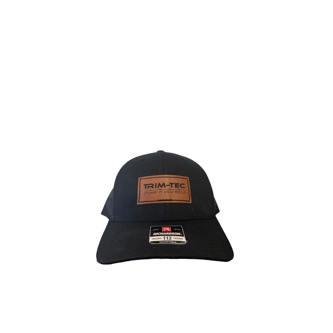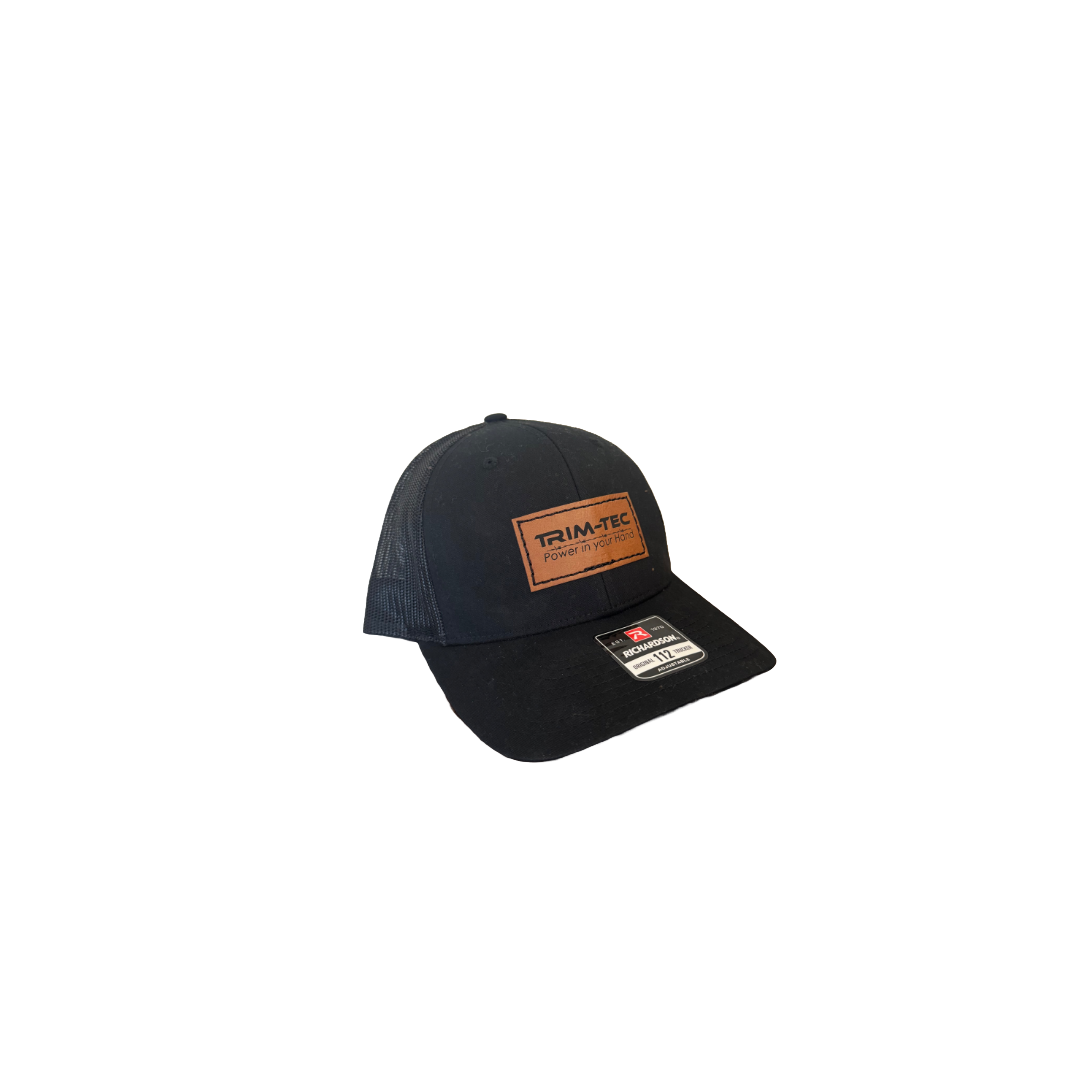 The perfect addition to any outfit. A classic black ball cap with our custom leather patches made and sewn on locally. These hats are high quality stylish hats that will help show your Trim Tec pride.